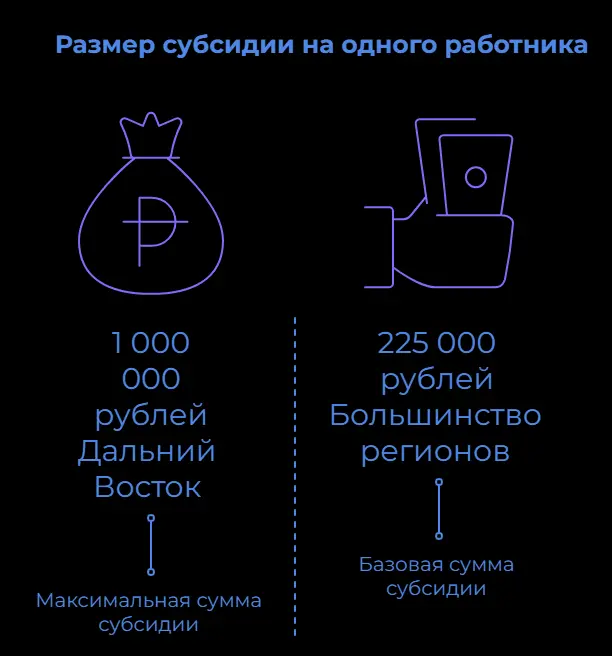 Общий объём поддержки в расчёте на одного специалиста может доходить до 1 миллиона рублей, в зависимости от региона.